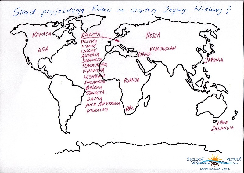 Przez 10 lat działalności Żeglugę Wiślaną odwiedziło wiele tysięcy Gości. Przyjeżdżają już nie tylko z Europy - Polska, Niemcy, Czechy, Austria, Słowacja, Szwajcaria, Francja, Hiszpania, Belgia, Szwecja, Dania, Wlk. Brytania, Ukraina, Rosja. Kiedyś zaskoczył mnie Klient mieszkający w Ruandzie, później przyjechali czarterowicze z Kazachstanu, USA i Kanady i z najdalszego miejsca od nas, czyli Nowej Zelandii. W tym roku znów niespodzianki - Goście z Izraela, Republiki Południowej Afryki i Japonii. Toru i jego żona wszystko ładnie opisali na swoim blogu.Jeżeli nie znacie japońskiego to można kliknąć na tłumaczenie w lewym dolnym rogu 😉 https://life-tabi.com/poland-cruise/ Jesteśmy wielce międzynarodowi - Ambasada w Rybinie coraz bardziej się przydaje 😉