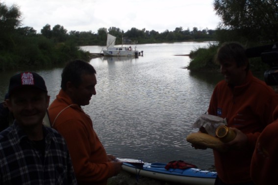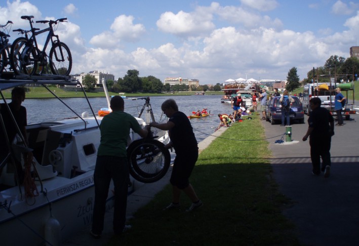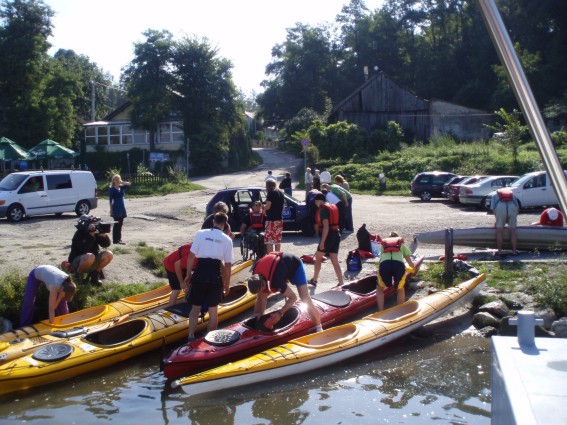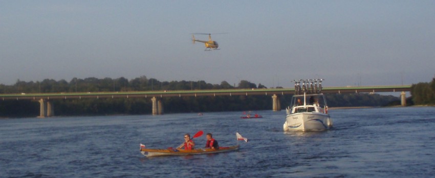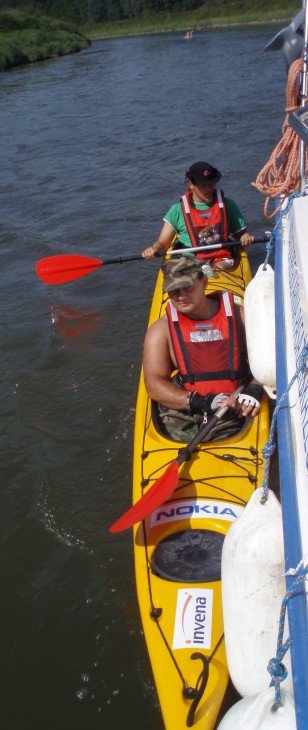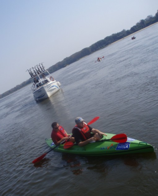 Zaczynamy przygodę z Wisłą z km „O” razem z dziesiątką osób płynących na kajakach, Paulina i Links z Łotwy, Marysia i Adrian z Ameryki, Magda, i Darek, panowie Edmund i Andrzej wśród nich jest także Maciek niepełnosprawny ruchowo, dlatego na lądzie porusza się na wózku inwalidzkim, oczywiście płynie też pan Marek Kamiński.