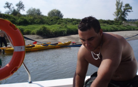 Wypłynięcie z Kazimierza o godzinie 9-tej, szkoda opuszczać to urocze miasteczko, ale cóż trzeba ruszać dalej. Przed nami tylko 32km. To był jeden ze spokojniejszych dni na Wiśle. Dotarliśmy do Dęblina wcześnie, ktoś poinformował nas abyśmy nie nocowali przycumowani do brzegu, ponieważ grasują tubylcy i dlatego noc spędziliśmy uwiązaniu do dalb na środku rzeki.