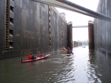 Po drodze minęliśmy dwie śluzy Dwory i Smolice, krótki postój przed promem w gminie Alwernia. Po wejściu na kanał Łączański przywitała nas grupa wodniaków, głównie pływających na kajakach, razem spłynęliśmy do miejscowości Brzeźnica.