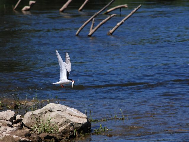 Zaraz za ostatnim mostem Warszawy oglądaliśmy mewy, krzyżówki i kormorany przy Kolektorze Młocińskim. Zimą można tu często spotkać orły bieliki, a w stadach krzyżówek znaleźć rożeńca, krakwę, świstuna, cyraneczkę, a nawet lodówkę. Następnie dopłynęliśmy do Ławic Kiełpińskich, gdzie widzieliśmy całe masy kormoranów i czapli siwych, a obok nich nurogęsi, czajki, kwokacze i czaple białe. W górze kilkakrotnie widzieliśmy krążące myszołowy i bieliki, a w wodzie dostrzegliśmy wydrę. Na Ławice Kiełpińskie szczególnie warto wybrać się tam podczas wiosennych i jesiennych przelotów. Tuż przed Modlinem napotkaliśmy duże noclegowisko mew i kormoranów, a wśród nich znalazły się także czajki i nurogęsi. Pośród licznych mew pospolitych, śmieszek, mew białogłowych i srebrzystych widzieliśmy także mewę żółtonogą oraz samotną gęś zbożową