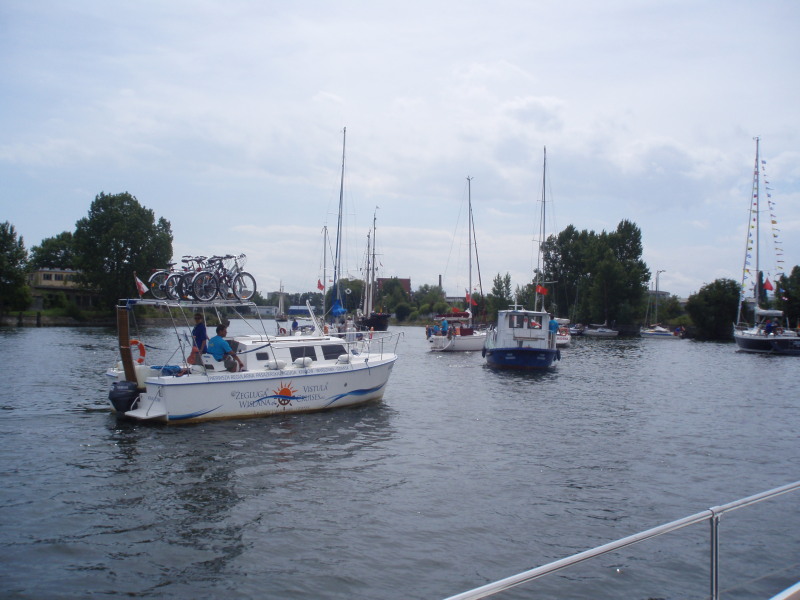 W piątek szczęśliwie dotarliśmy do 936 kilometra szlaku żeglownego Wisły, na którym znajduje się śluza w Przegalinie, otwierająca drogę do Gdańska. Pod zabytkowym Żurawiem flotylle Żeglugi Wiślanej prowadził Wojtek który tym samym zakończył historyczny, powtórny rejs hamburką, pokonując nią w ciągu czterech tygodni trasę z Krakowa.