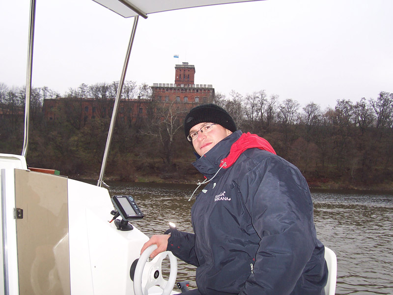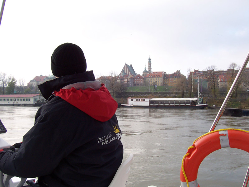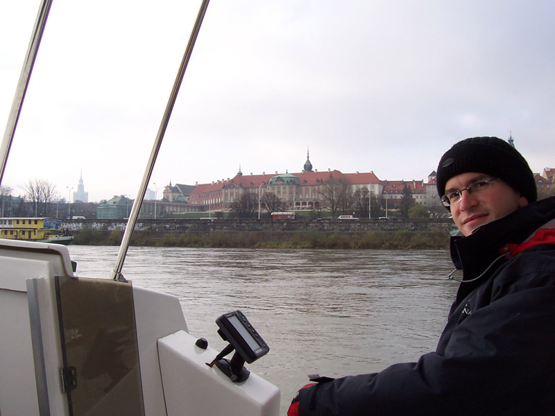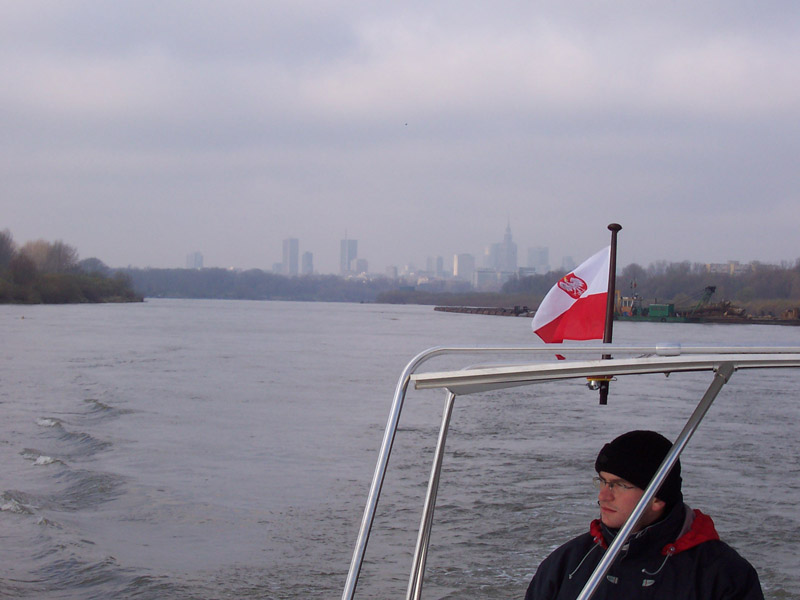 2007-11-15: Dziś pogoda znacznie lepsza - stolica skąpana w jesiennym słońcu. Po wypłynięciu z Warszawy w kierunku północnym wpływamy na dzikie odcinki rzeki. Coraz więcej wysp i wysepek - trzeba dobrze nawigować! Docieramy do Zakroczynia. Później wracamy do Nowego Dworu. Po pożywnej kolacji w rosyjskiej restauracji "Brama Ostrołęcka" u pana Krzysztofa Prentkiego, nocleg w przystani Silirus pod Twierdzą Modlin.